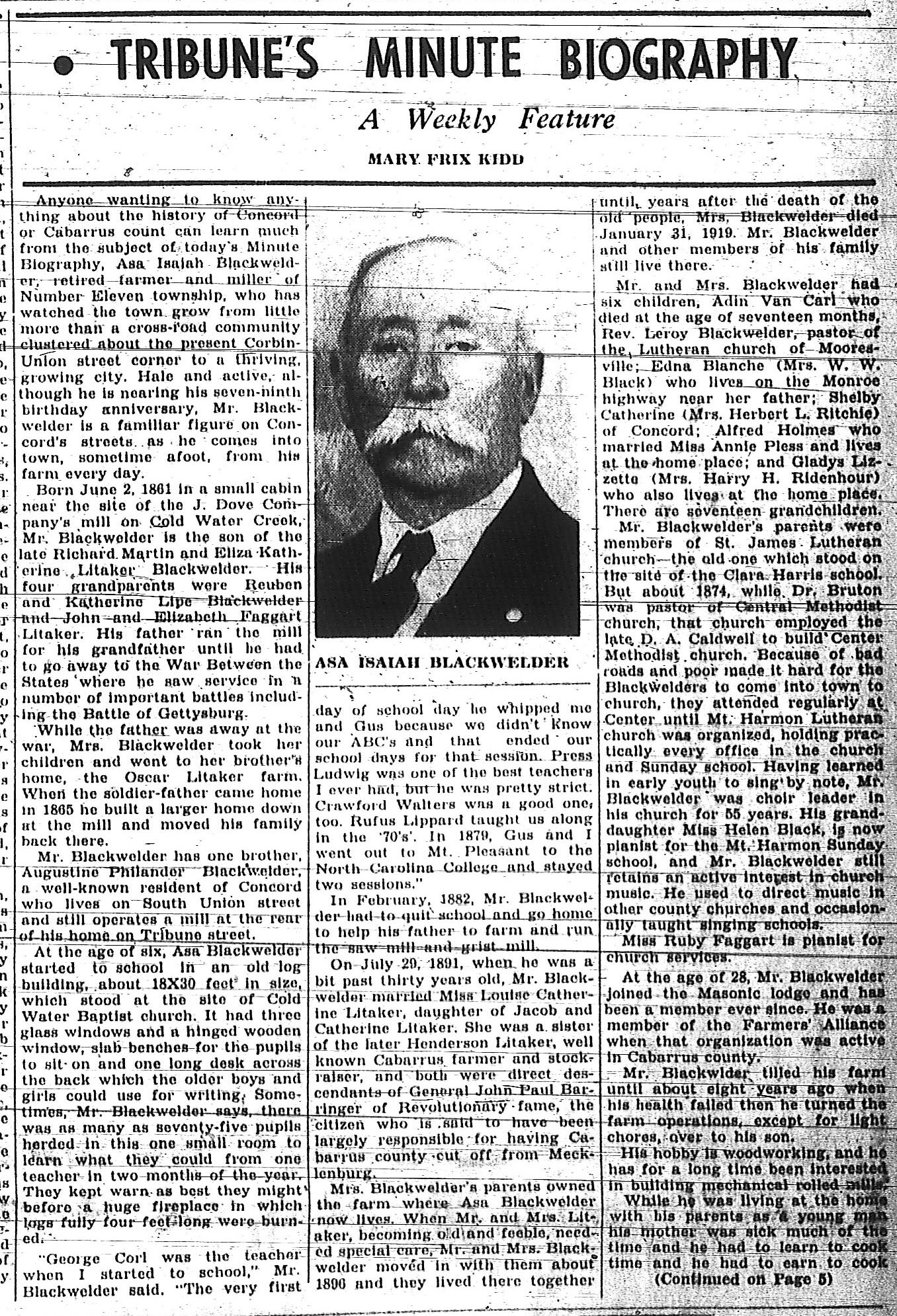 BLACKWELDER, Asa Isaiah