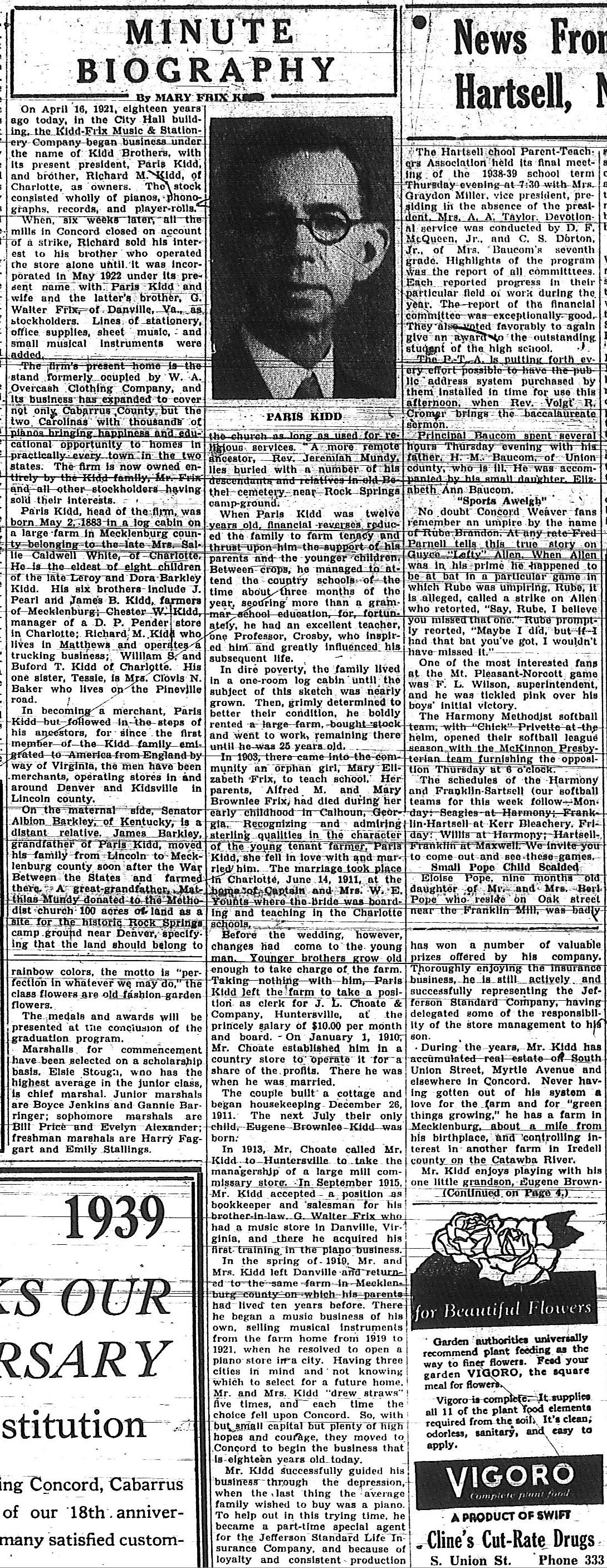 (Concord, NC), 16 Apr 1939, section 2, page 1.